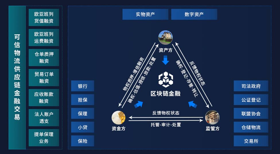 数字供应链板块,基于“可信计算”技术研发的数字供应链综合服务平台,旨在解决核心企业的信用多级传递、对货物监管监控能力、货物价值波动监测、授信风险定价能力、货值处置能力、多方数据联合风控等痛点,盘活客户现有资产,让上下游产业链得到有效的数字供应链服务。