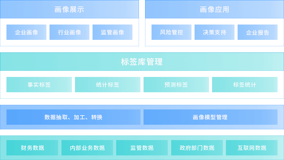 权属企业画像系统借助互联网大数据领域“画像”、“标签”等新思路、新技术,通过对权属企业进行多维度、多角度的信息整合、建模分析和标签提取,刻画出 监管企业基本信息、财务特征、经营行为、关联关系等多角度特征,形成一个全方位的面向监管的权属企业画像,为风险识别、权属企业运营状况展示、投后企业 监管等提供基本服务支撑。