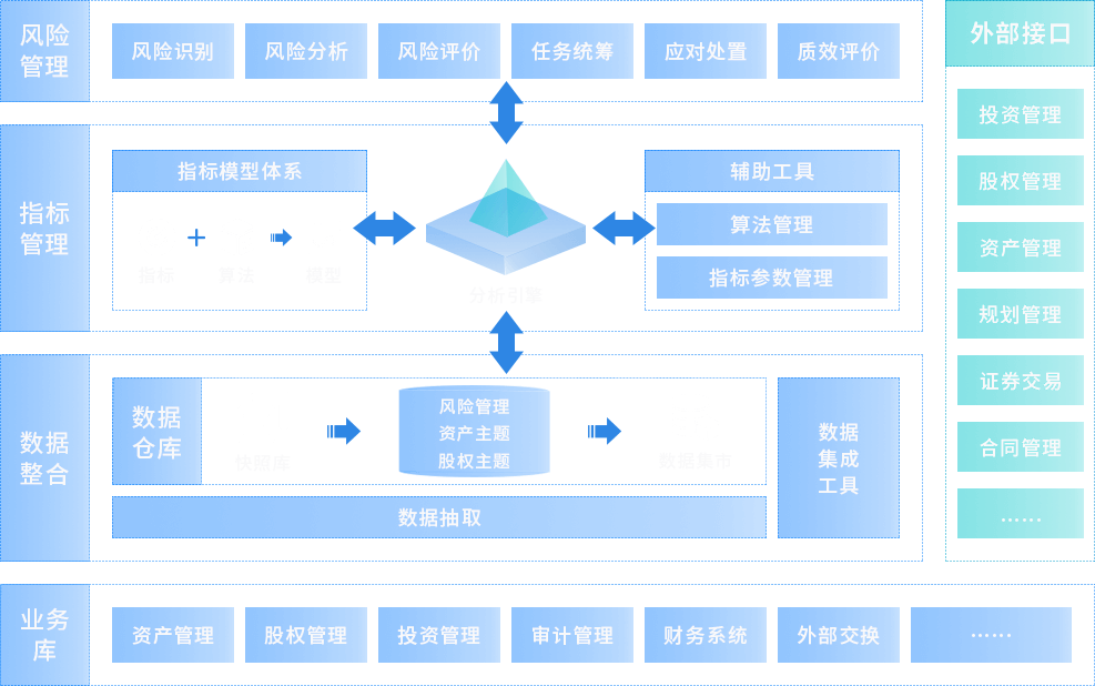 从企业战略目标出发,结合风险监督信息,识别影响目标实现的各类风险,分析风险发生的可能性与影响程度,确定需要应对风险的优先次序,制定实施应对措施, 与不同层级的业务管理人员沟通风险信息,进行预警提示,为公司领导决策提供支持。风控管理服务范畴为企业总部全角色、总部全业务部门、全权属企业相关的 经营监控、财务风险监控、合规风险监控、安全生产监控等风险控制,其目的为全方位保障国投资本运营全生命周期风控管理。